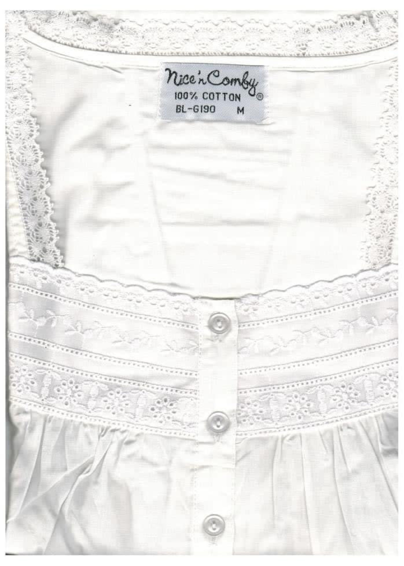 This vintage white cotton nightgown from Nice'n Comfy is a timeless piece and great for all seasons. It is made from a light/medium weight cotton and has embroidered flowers along the straps and neckline.
